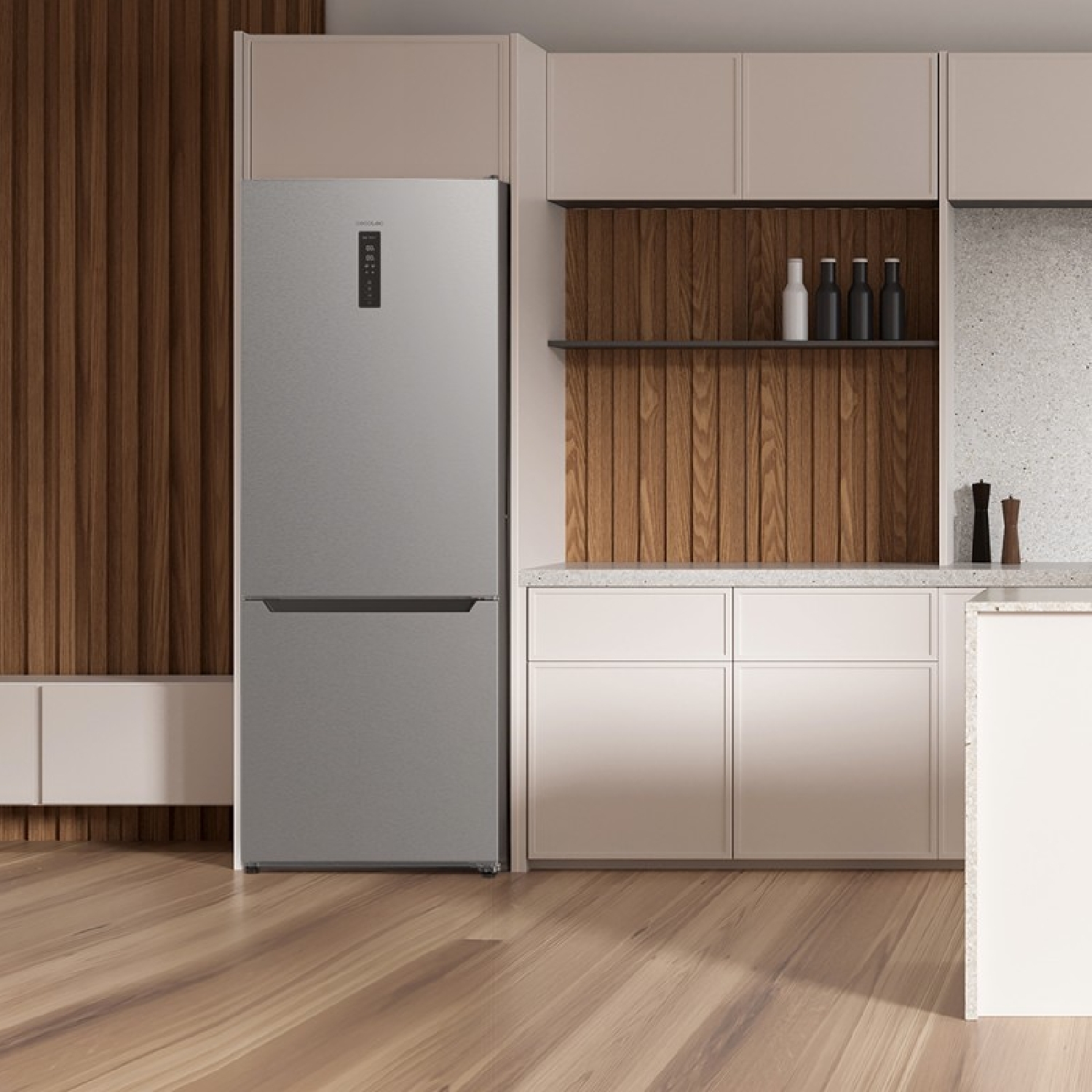 Kombikühlschrank aus Edelstahl, 200 cm hoch und 59,5 cm breit, 356 L Fassungsvermögen, Total No Frost, Energieklasse E. Außerdem verfügt er über verschiedene Betriebsarten wie Fast Cooling (Schnellkühlen) und Fast Freezing (Schnellgefrieren) sowie über Systeme wie MultiAirFlow und Urlaubsmodus.