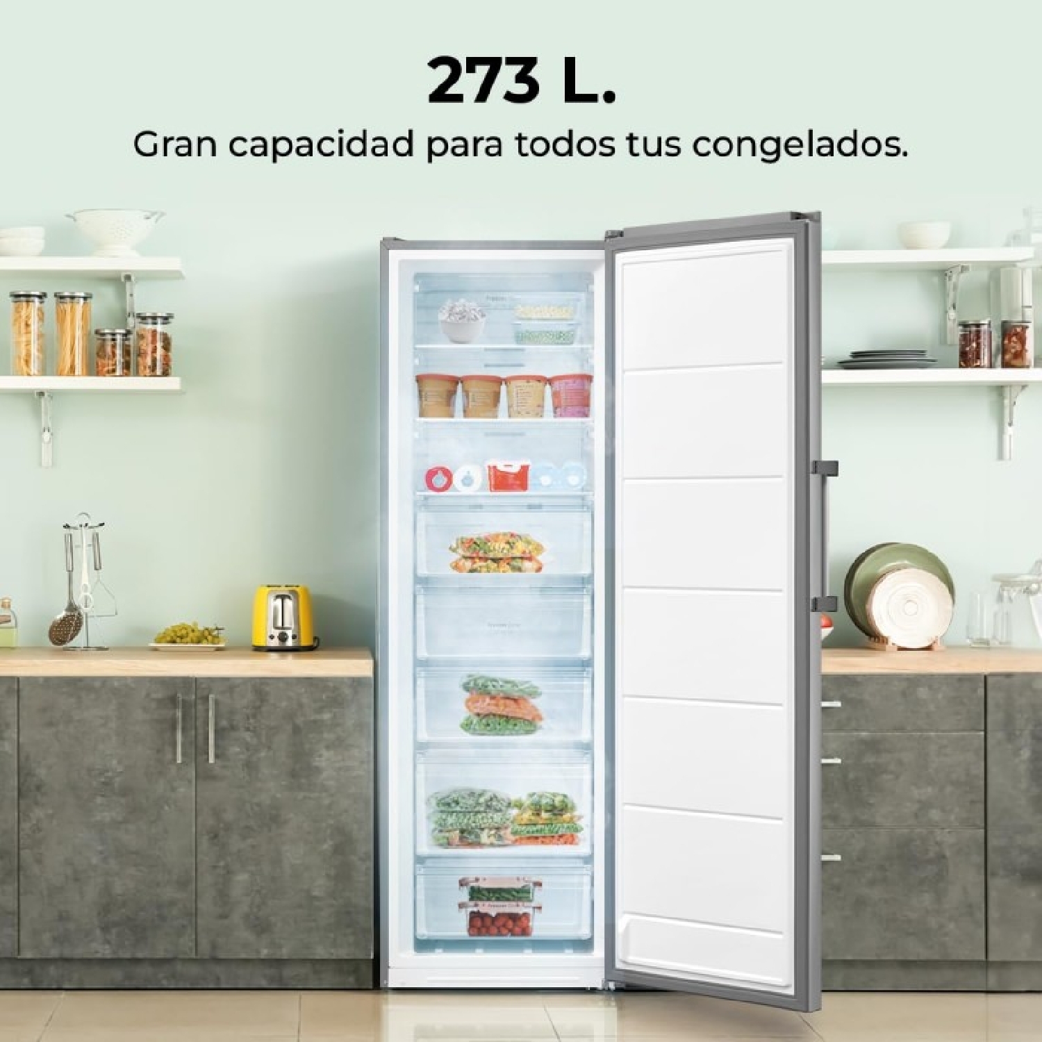 Bolero CoolMarket UF 273 Edelstahl E-Gefrierschränke mit XL-Kapazität, mit der Flexibilität der Verwendung sowohl für Gefrierschrank und Kühlschrank. Perfekt zu kombinieren mit einem eintürigen Kühlschrank, um einen amerikanischen zu schaffen.