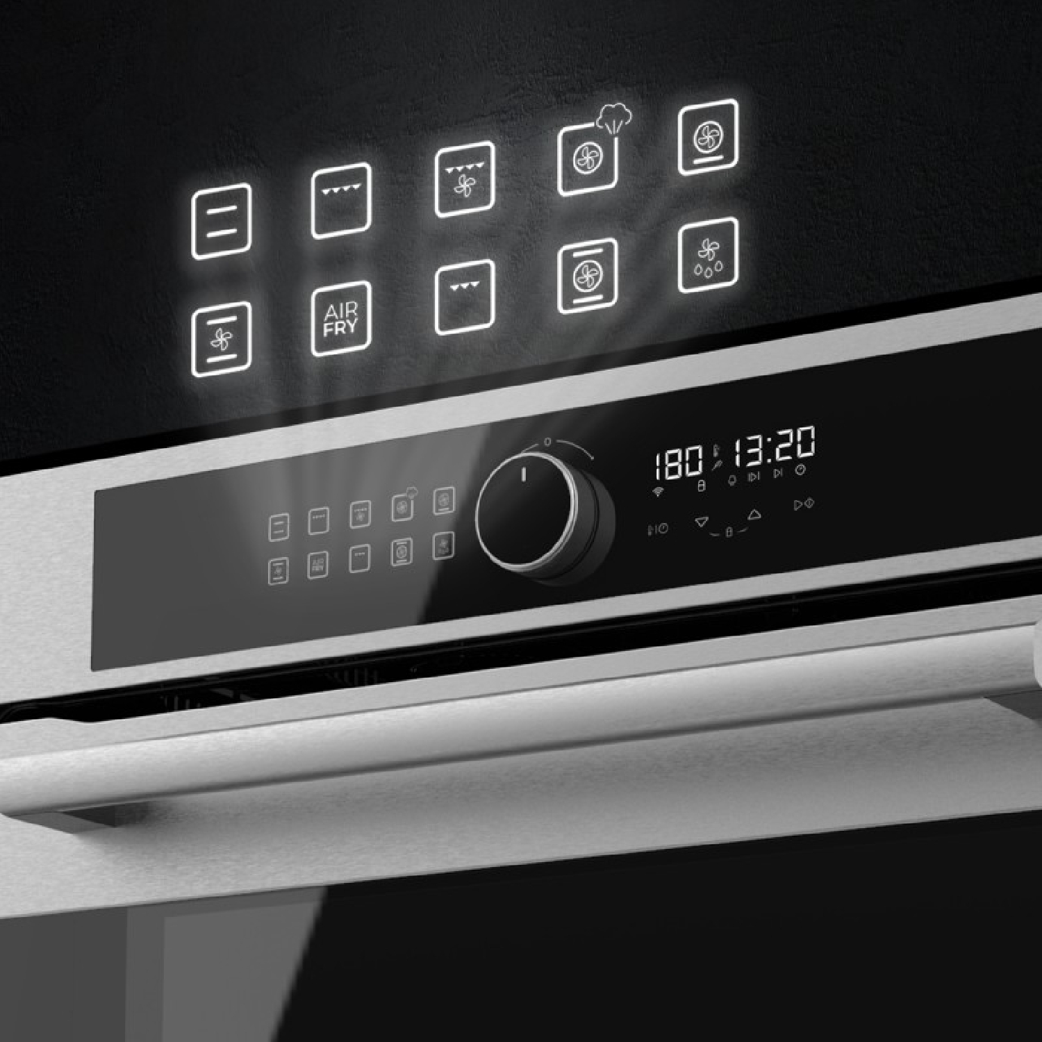 Integrierbarer Airfryer Backofen Inox mit 72 l Fassungsvermögen, 11 Funktionen mit Airfryer Master, Pizza Master, Steam Asisst, Steam EasyClean, 3D cooking, Klasse A.