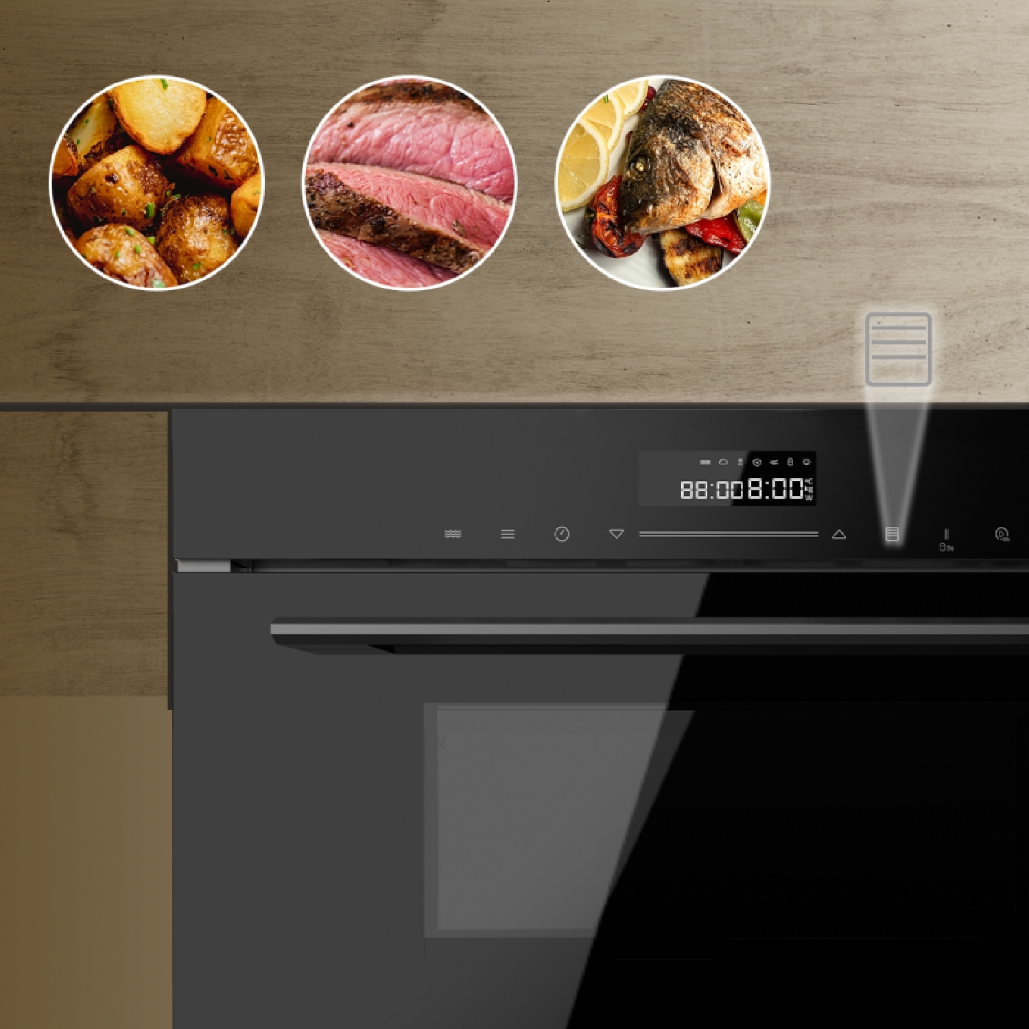 Integrierte Mikrowelle Glass Black, 34 L Fassungsvermögen mit Mikrowellenfunktion, Grillmodus, Defrost (Auftauen), Auto-Menü, Speed Cooking (Schnellkochen), elektronischer Timer.