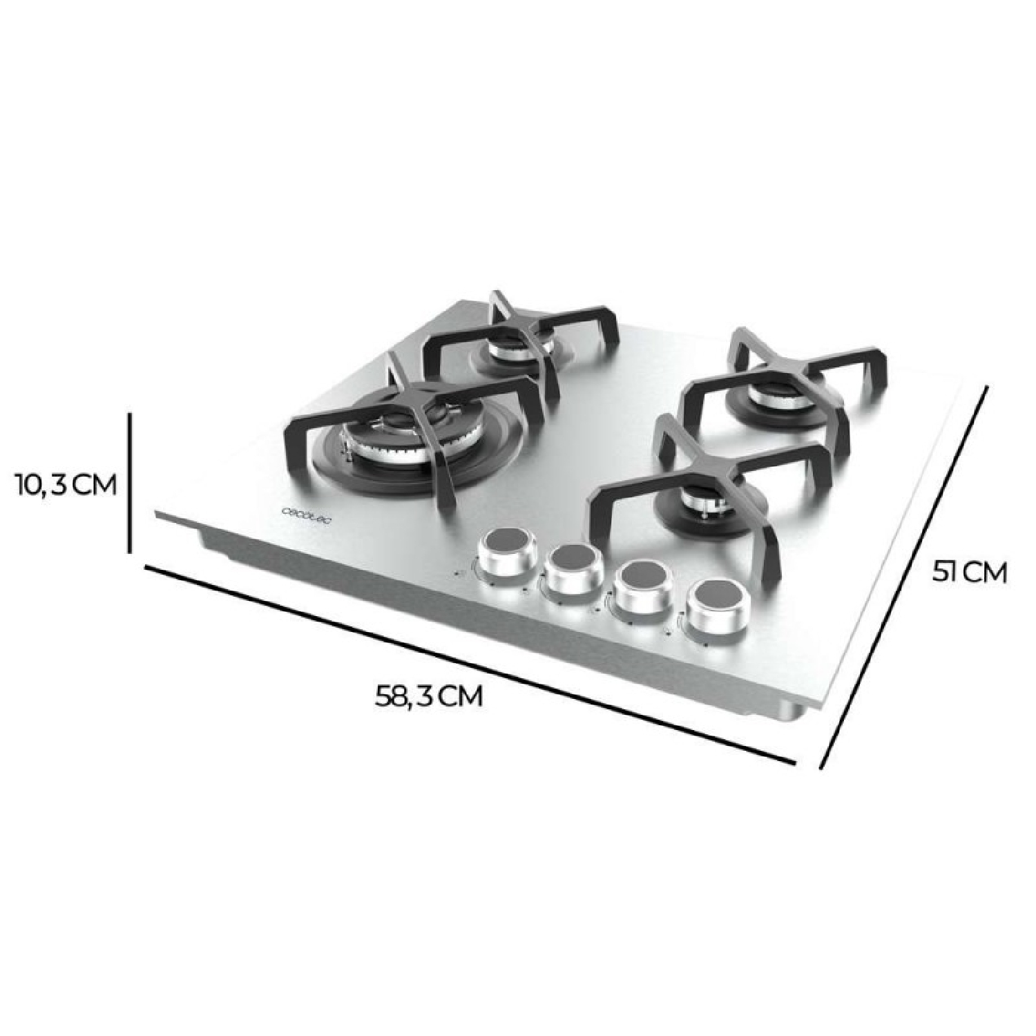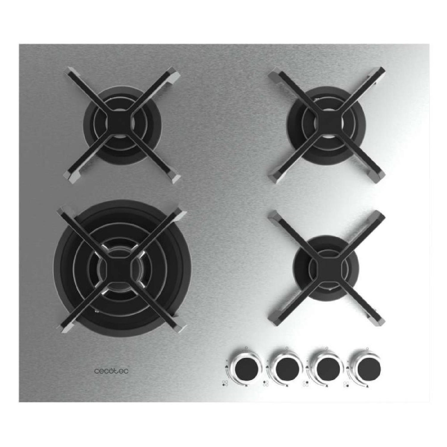 Cecotec Bolero Squad G 4400S Inox – 4-Ring-Gaskochfeld, 8kW, Edelstahl, Gusseisenroste, Dreifach-Kronen-WOK-Brenner, elektronische Zündung, Ventilsicherung, umrüstbar auf Butangas.