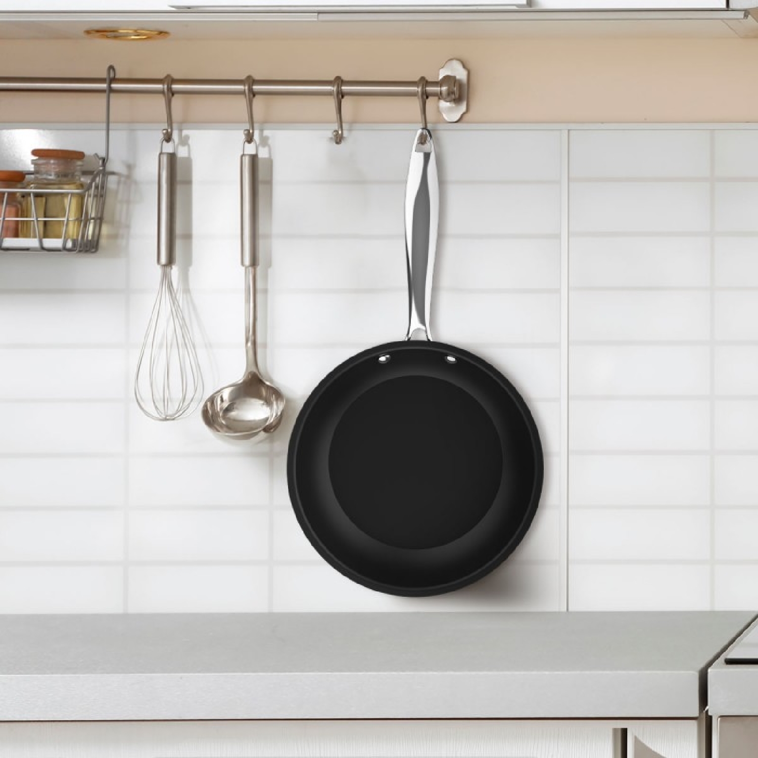 Hochwertiges Bratpfannenset aus rostfreiem Stahl 20-24-28 cm, mit genietetem Griff aus rostfreiem Stahl. Insgesamt 5 Schichten. Eine 100% PFOA-freie doppelte Antihaftbeschichtung und ein dreischichtiger Induktionsboden, spülmaschinenfest und für alle Herdarten geeignet, auch für Induktionsherde. Unverformbarer Topfboden von 5,2 mm Dicke