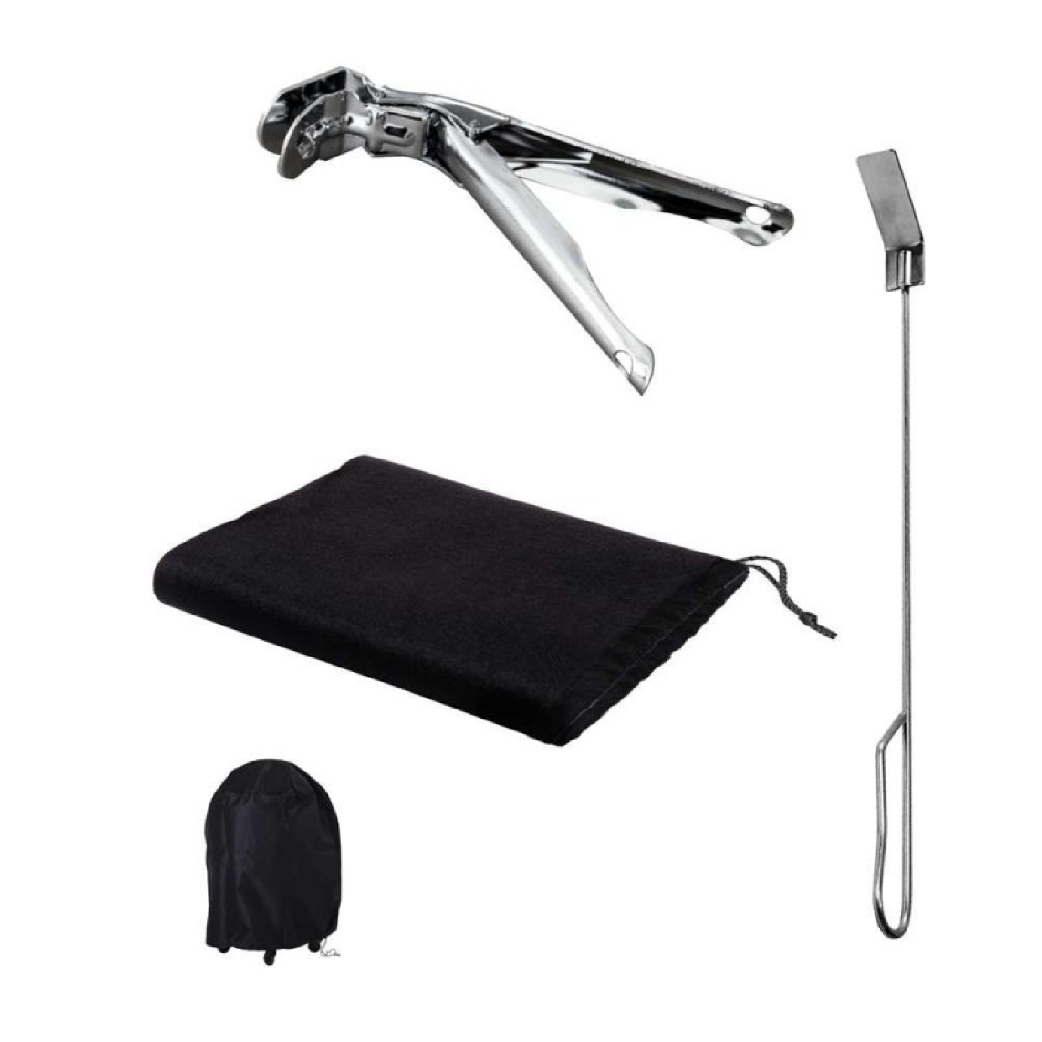 Kamado DragonFire 6600 Grillzubehörpaket mit Zange, Schutzhülle und Schürhaken.