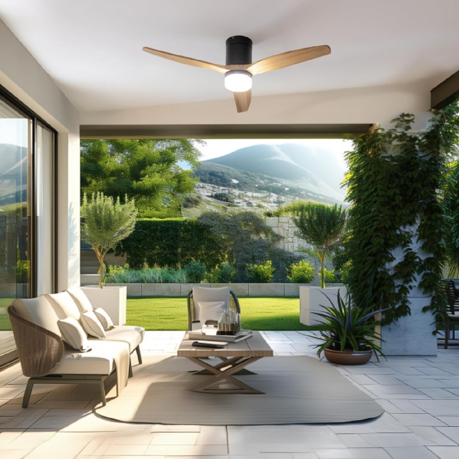 40 W 52″ Deckenventilator mit Fernbedienung, WiFi und Fernbedienung, IP44 Schutz, Licht, 6 Geschwindigkeiten, 3 Flügel, Winter-Sommer-Modus und Timer bis zu 8 Stunden.