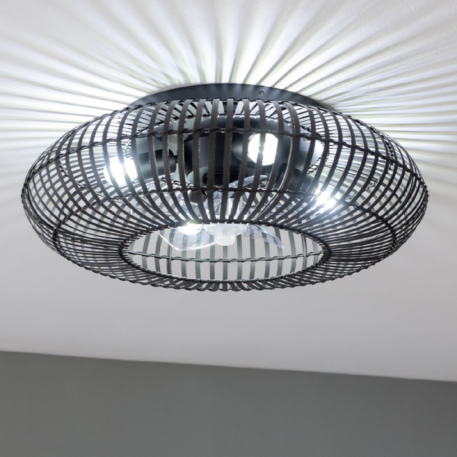 Design-Deckenventilator mit DC-Motor, mit einer Leistung von 20W und integrierter Lampe, mit 5 Flügeln von 11 Zoll, Fernbedienung, 3 Geschwindigkeiten, 3 verfügbare Lichtschattierungen, Timer und Winter/Sommer-Modus.