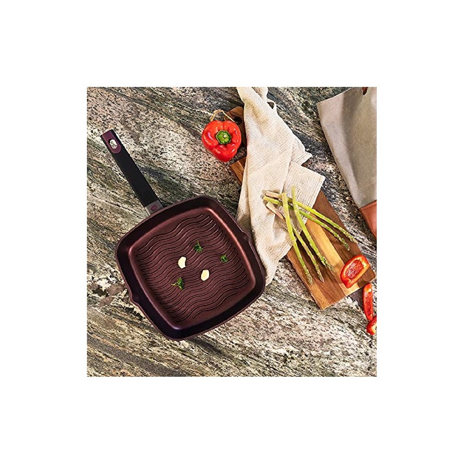 28 cm Grill aus hochwertigem Aluminiumguss, mit 6 Schichten und maximaler Antihaftbeschichtung Select Teflon™ Antihaftbeschichtung, PFOA-frei, mit Full Induction Wärmediffusor Boden, spülmaschinenfest und geeignet für alle Herdarten einschließlich Induktion. Unverformbarer Topfboden von 5mm Dicke.