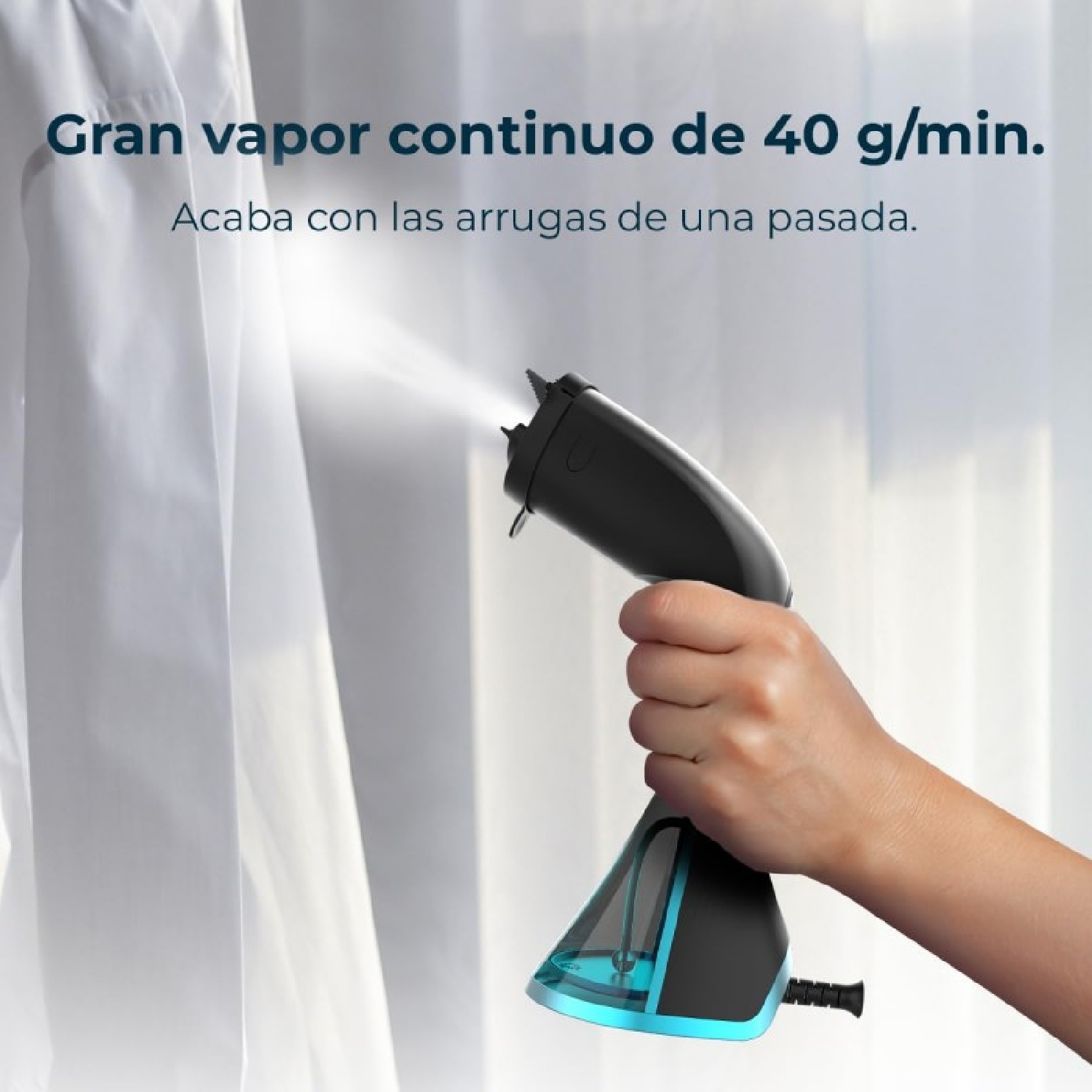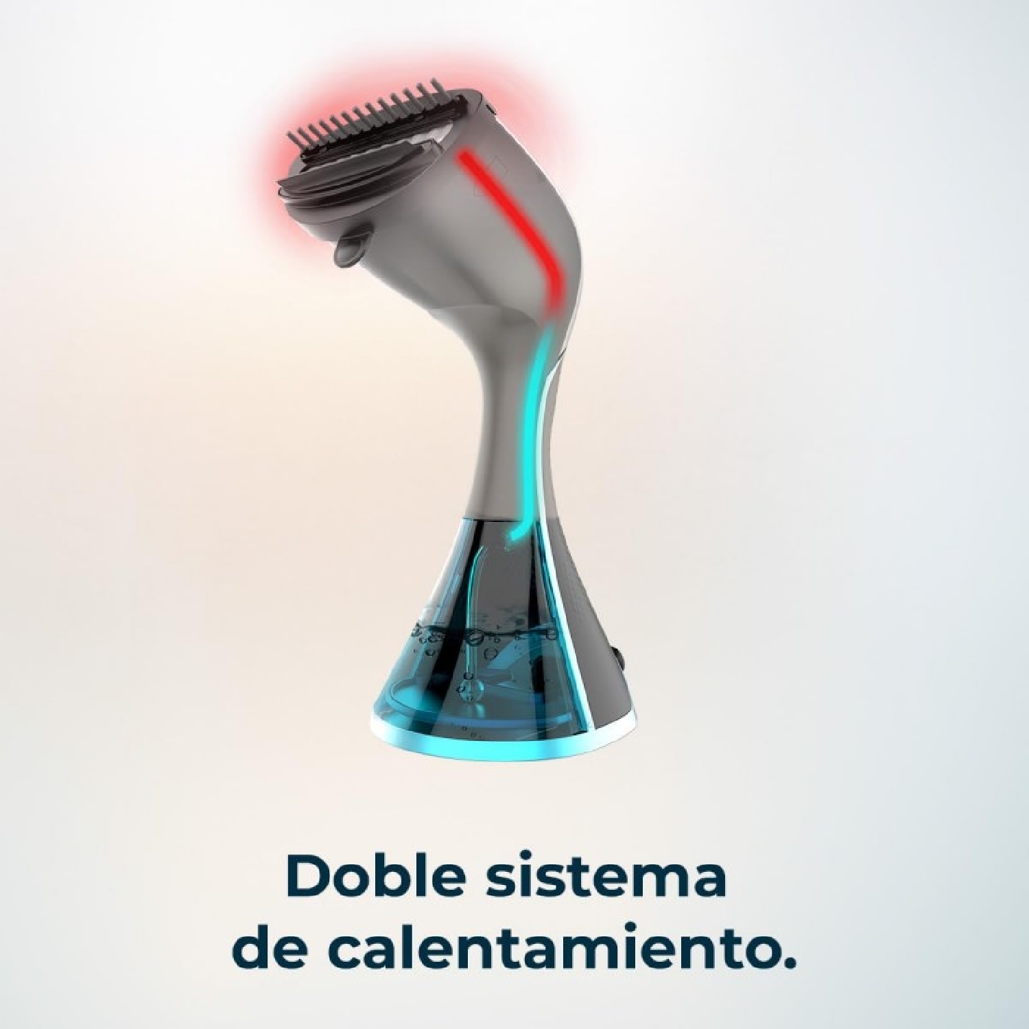 Vertikales Bügeleisen mit 2100 W, hohem Dauerdampf 40 g/min, LED-Funktionskontrollleuchte, doppeltem Heizsystem und 3 Dampfstufen.