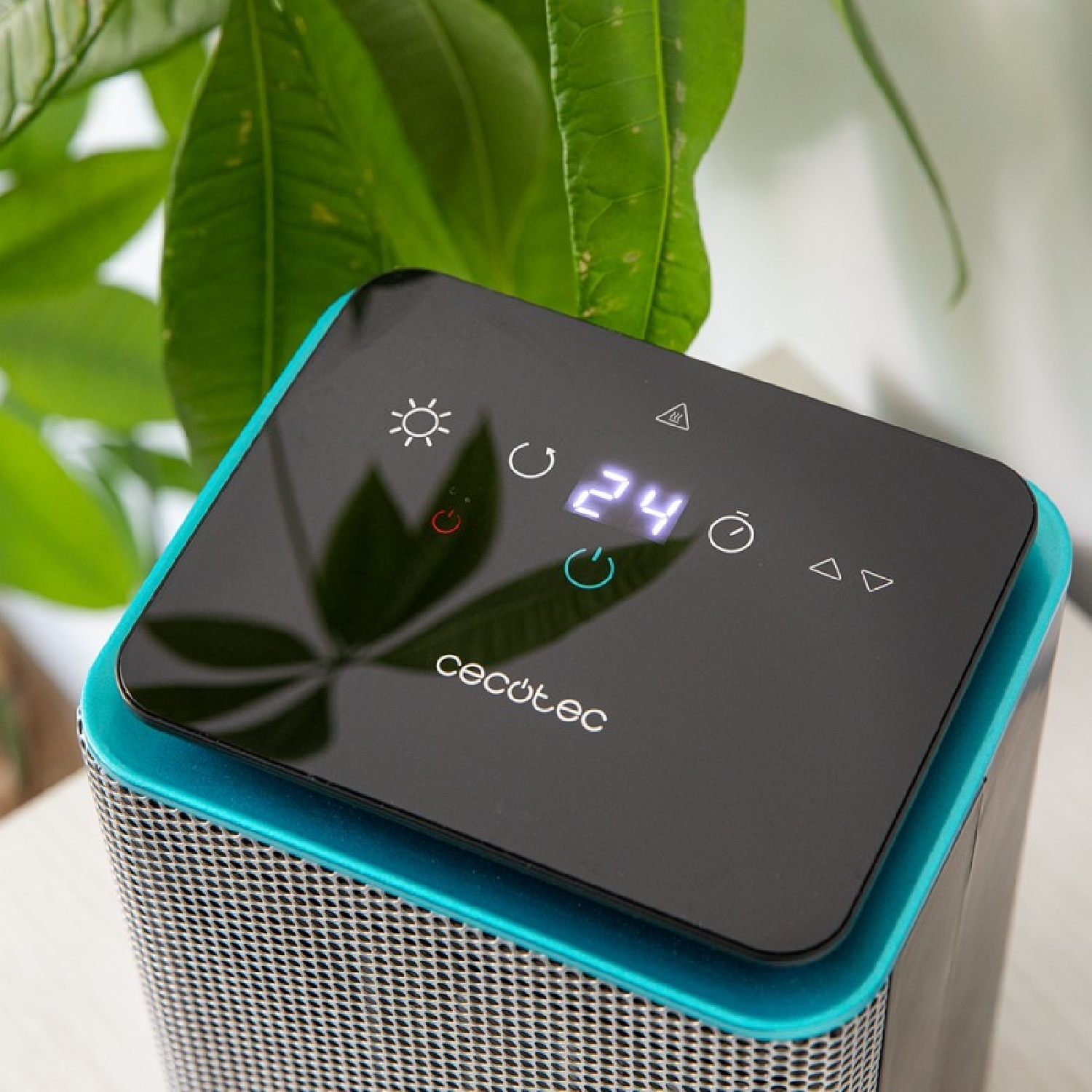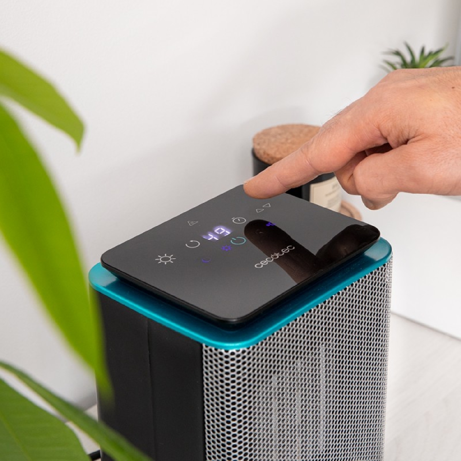 Keramik-Heizgerät mit 1500 W, einstellbarem Thermostat, LED-Anzeige, Fernbedienung, Touch Control, 3 Modi, 24-Stunden-Timer, 90 º-Oszillation und dreifaches Sicherheitssystem.