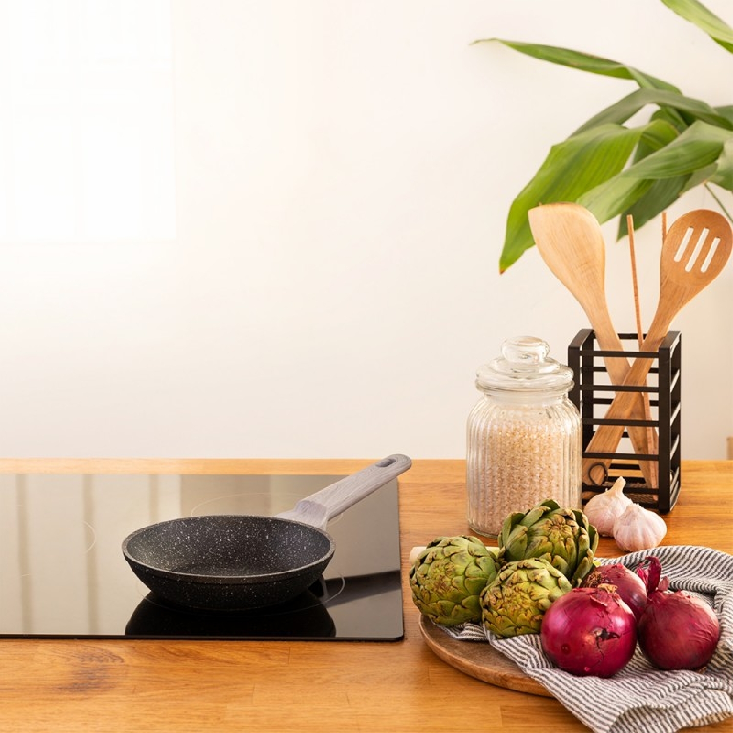 22cm Bratpfanne aus hochwertigem geschmiedetem Aluminium, mit 6 Schichten und maximaler Antihaftbeschichtung Select Teflon™ Antihaftbeschichtung, PFOA-frei, mit Full Induction Hitzediffusor Boden, spülmaschinenfest und geeignet für alle Herdarten einschließlich Induktion. Unverformbarer Topfboden von 5mm Dicke.